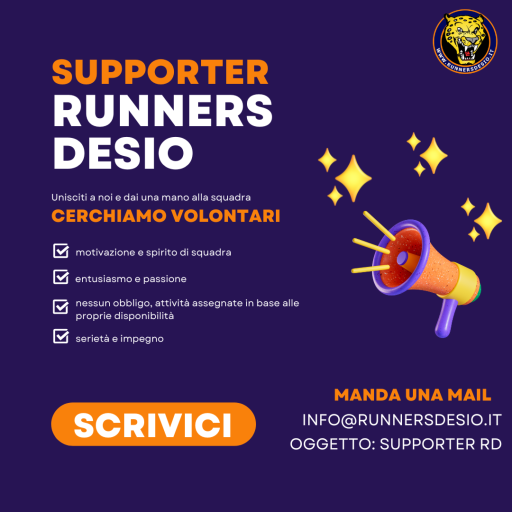 Siamo entusiasti di annunciare la creazione del nuovo gruppo “Supporter Runners Desio“, un’iniziativa dedicata a tutti i Soci della nostra squadra di running che desiderano fare di più per la nostra comunità sportiva. Se sei un appassionato di corsa, dei Runners Desio e hai voglia di partecipare attivamente alla crescita della squadra, sei la persona giusta.