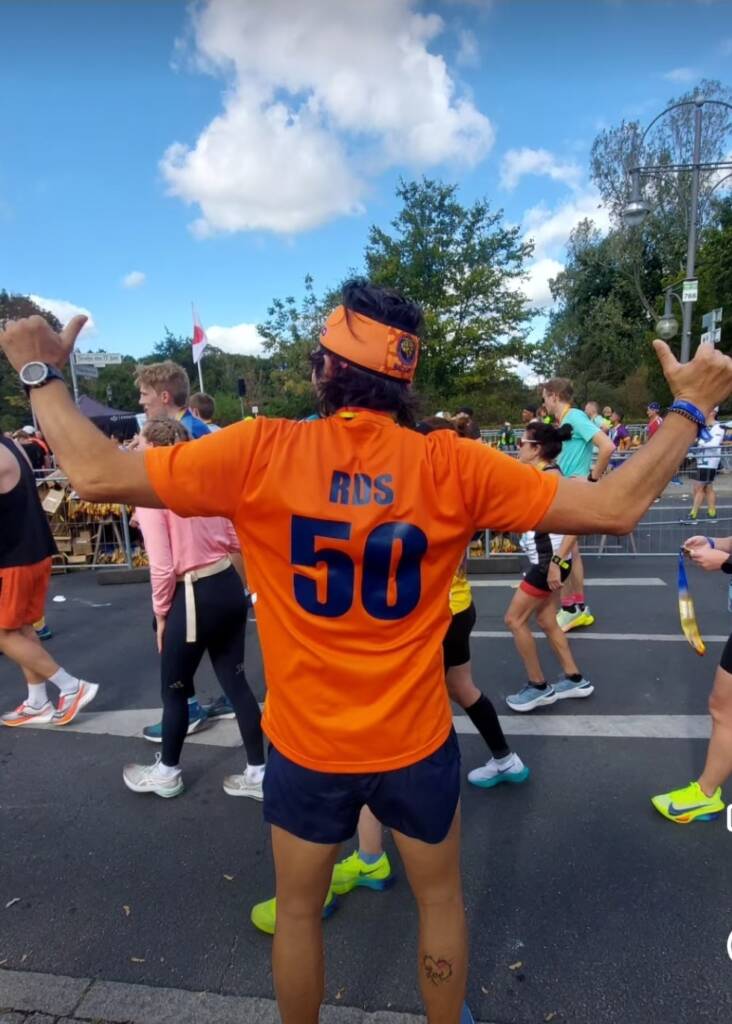 Estratto a sorte alla lotteria o per regalo diretto dalla Berlino Marathon per i suoi cinquant’anni poco importa, perché Roberto Di Santo era lì con gli altri a scrivere altre righe storiche per i Runners Desio. Una vigilia di compleanno speciale per lui anche se non in perfette condizioni fisiche ha onorato la maratona da buon felino! Tornerà – ci promette – quando starà meglio!