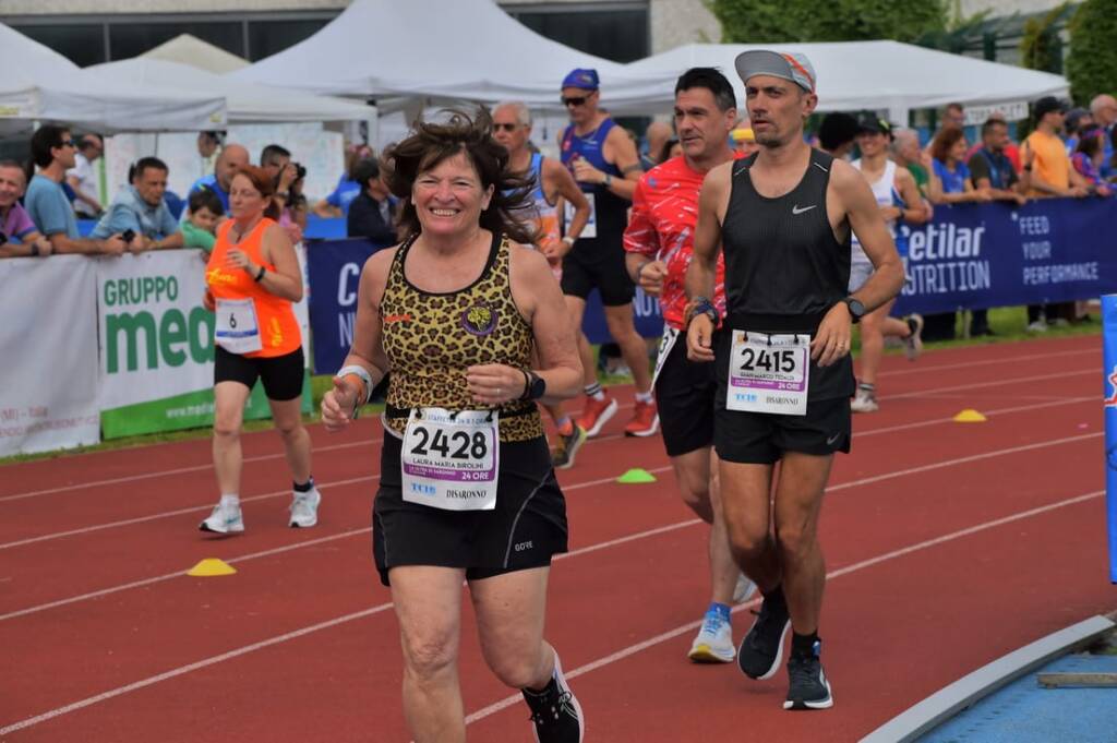 In molti simpaticamente la definiscono una “cricetata” questo continuo girare in pista, quattrocento metri ed è solo un giro! Nel corso delle 24 ore si sono susseguite diverse fasi metereologiche, quest’anno rispetto l’anno scorso il caldo unito ad una elevata umidità non ha di certo favorito la corsa nelle ore diurne. Entrando nel dettaglio delle prestazioni Laura raggiunge il suo obbiettivo di essere la prima donna nella sua categoria e per pochi km ha mancato pure il podio assoluto femminile. Con i suoi 304 giri ha raggiunto quota 121 km e spicci, è alla quinta gara nei RD ed ha già percorso un totale di 479 km, una media di circa 95 km a gara, incredibile!