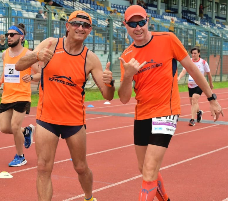 Questa settimana una standing ovation la merita tutta il nostro Angelino, è stata la sua quinta gara di quest’anno e con questa mole di km percorsi a Saronno, 158,6 km in 396 giri raggiunge per direttissima il secondo posto nella classifica dei macinatori, 393 km con una media di 78,6 km a gara nel 2024. Angelino sperava tanto nel primo posto di categoria nonostante fosse consapevole di avere un avversario decisivamente più forte, alla fine si “accontenta” di essere il vicecampione di categoria ottenendo tra l’altro un soddisfacente settimo posto assoluto su 28 piazzamenti totali, dietro di lui due atleti della sua categoria: bravo, bravo, bravo Angelino a non mollare!