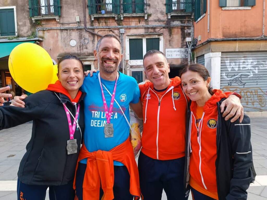 Domenica scorsa i colori arancioni dei nostri atleti hanno brillato anche alla Maratona di Venezia. Massimo Bignotti ha affrontato l’ennesima lunga distanza con la sua solita “nonchalance“, mentre Angela Gragnaniello, in veste di pacer per le quattro ore, ha centrato l’obiettivo, arrivando al traguardo esattamente in quattro ore precise. La vera festa, però, è stata per Simona Cotroneo, che ha stabilito il suo nuovo personal best, tagliando il traguardo insieme al compagno Dario De Benedetto in 3:43:33..
