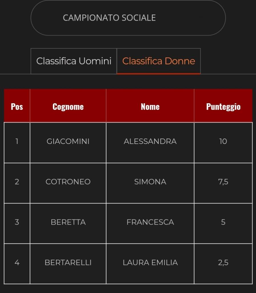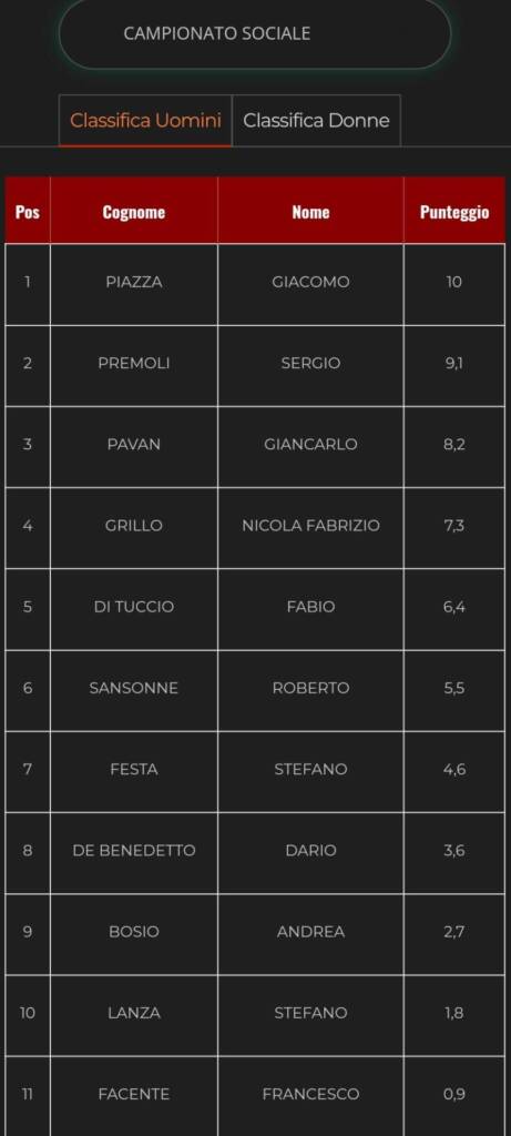 La classifica del campionato sociale dopo la prima gara: